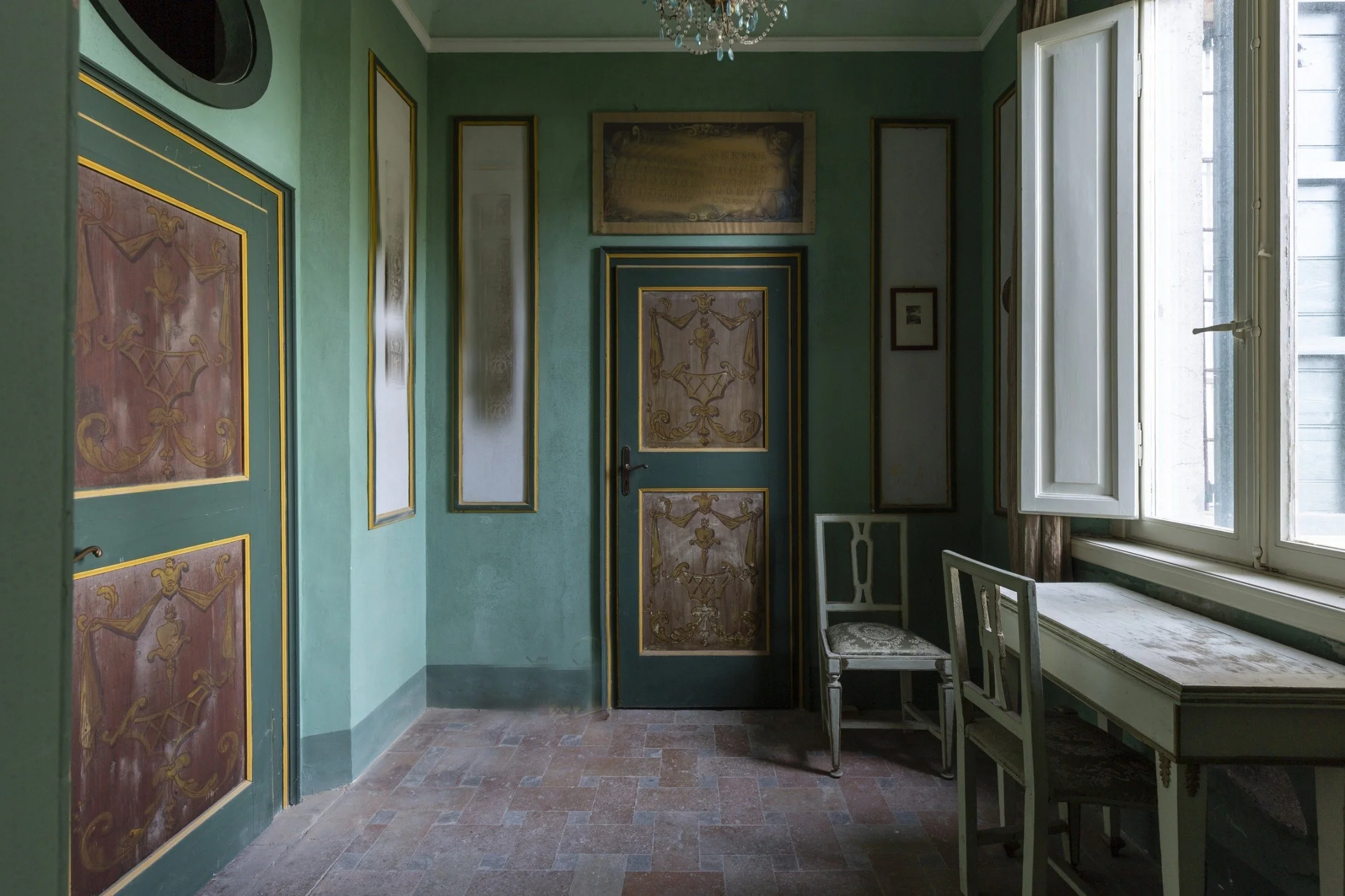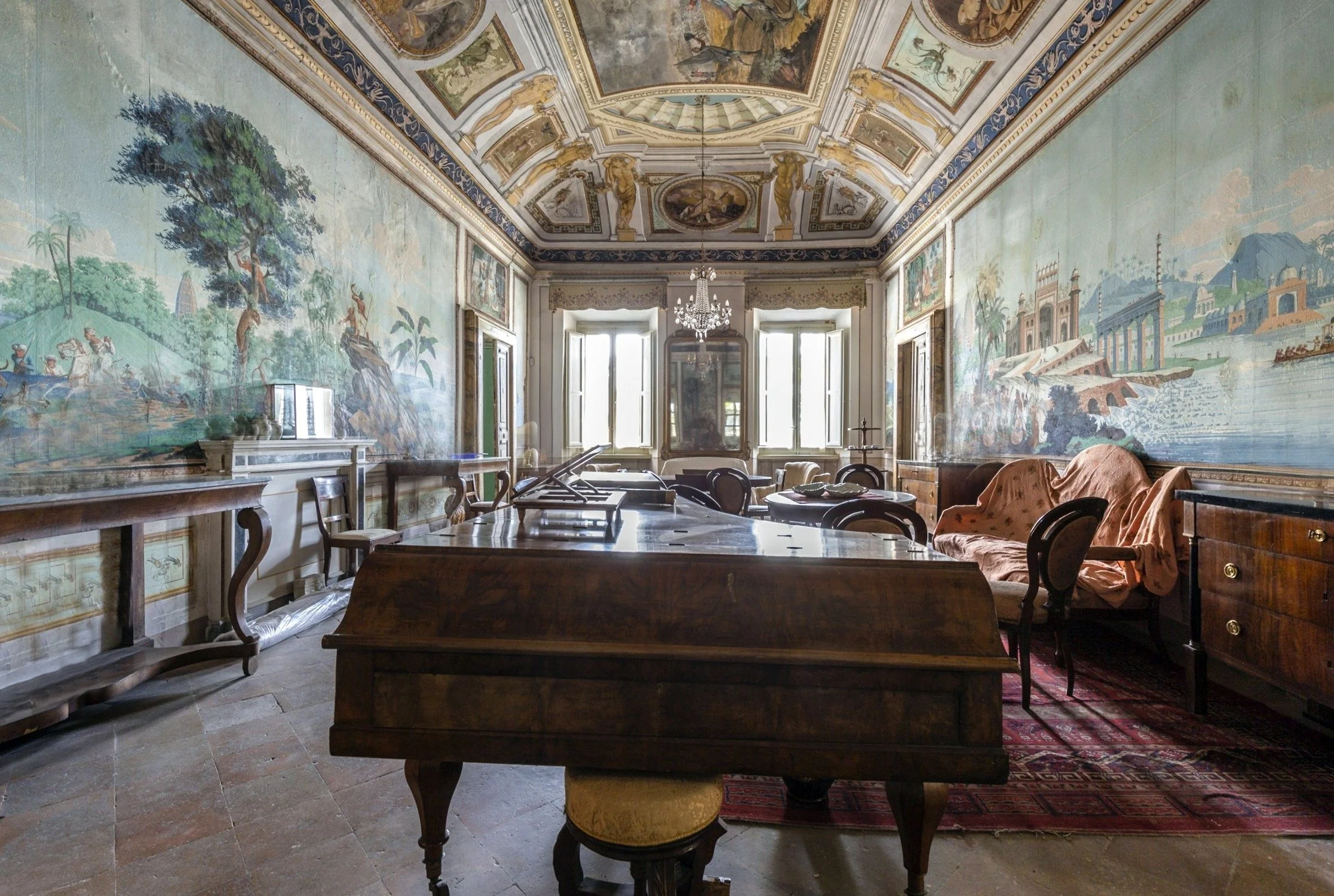 Oriental scenes on the walls, rare 19th-century French maps that somehow survived intact, decorated doors, original terracotta floors. This hall gets mentioned in literature on historical Italian residences, which tells you it's the real thing, not just estate agent hyperbole.
