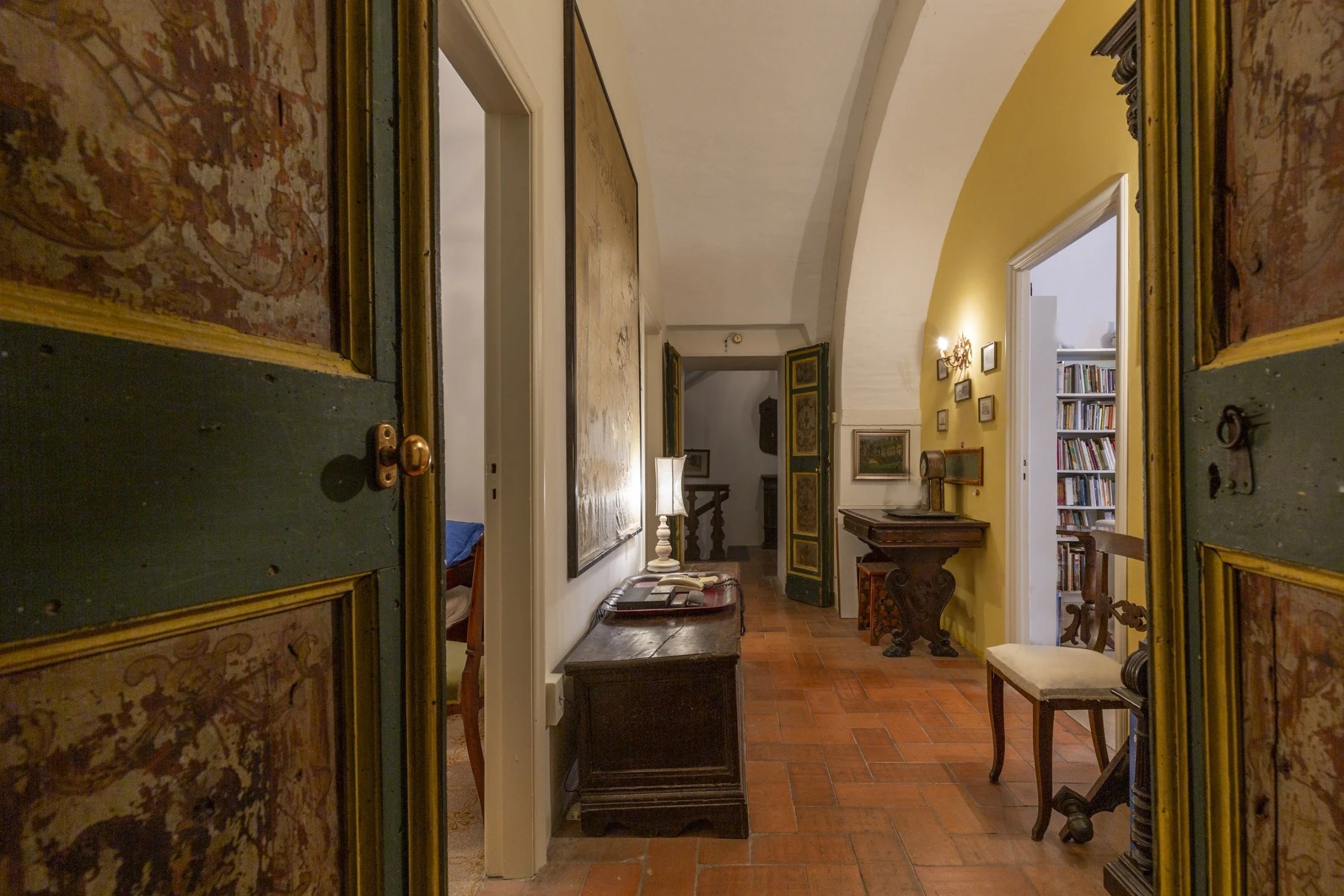 Ground floor: entrance, three rooms with cross vaults, sanitary facilities, storage. The main staircase alone is worth looking at, adorned with coffered ceilings and handcrafted ceramics.