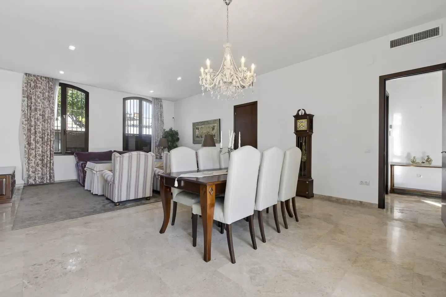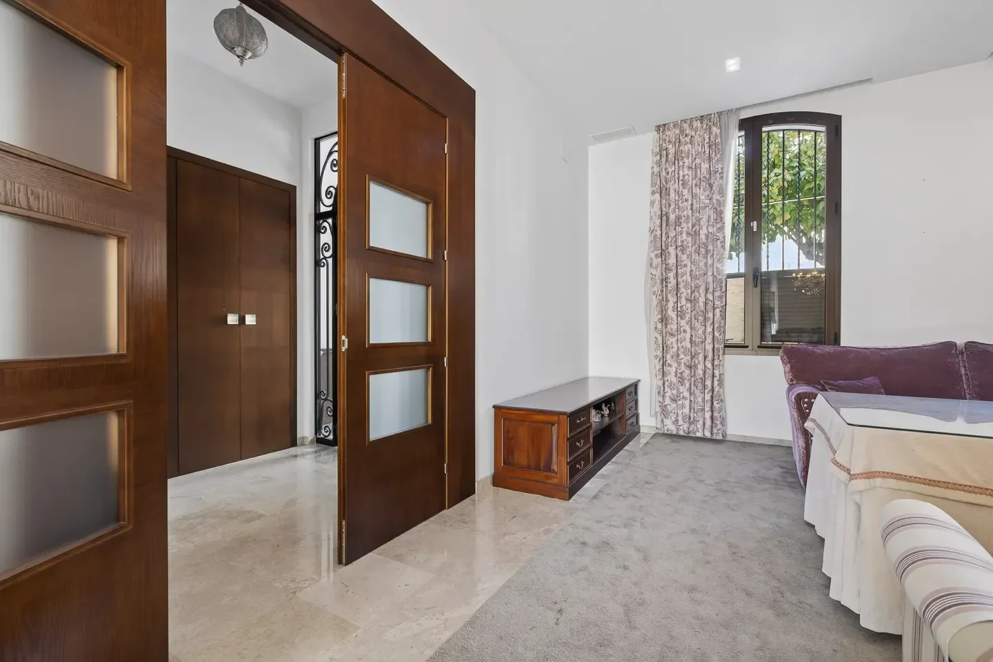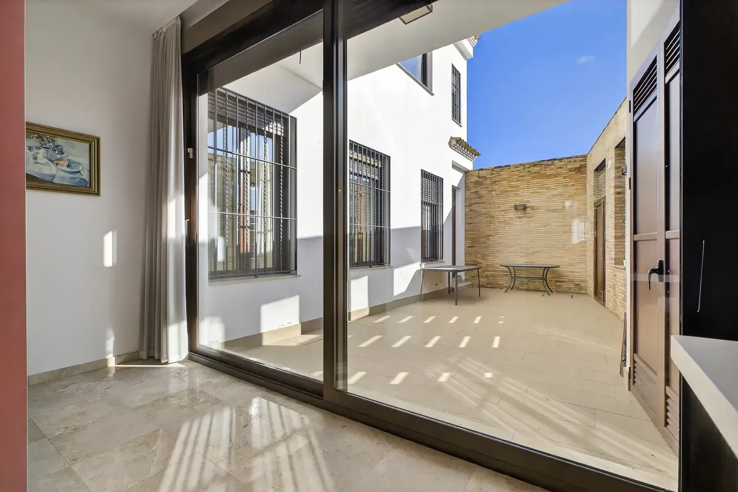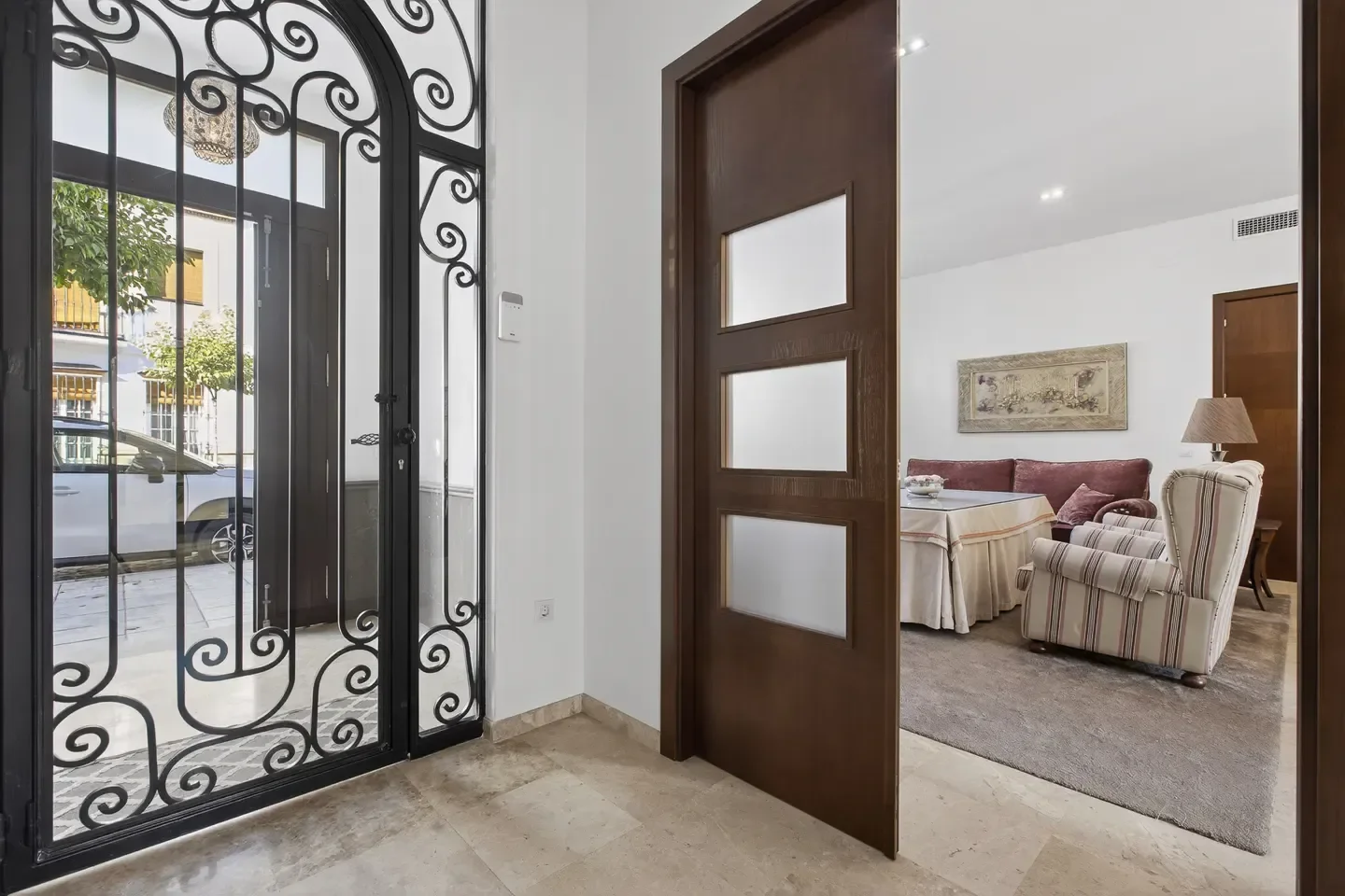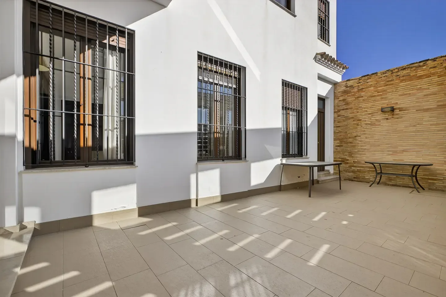 You're looking at 186 m² of living space with high ceilings, marble entrance, and two patios that do actual work rather than just sitting there looking decorative. The location puts you within walking distance of supermarkets, pharmacy, town hall, and a bus stop with direct connection to Seville's Plaza de Armas and Plaza de Cuba.