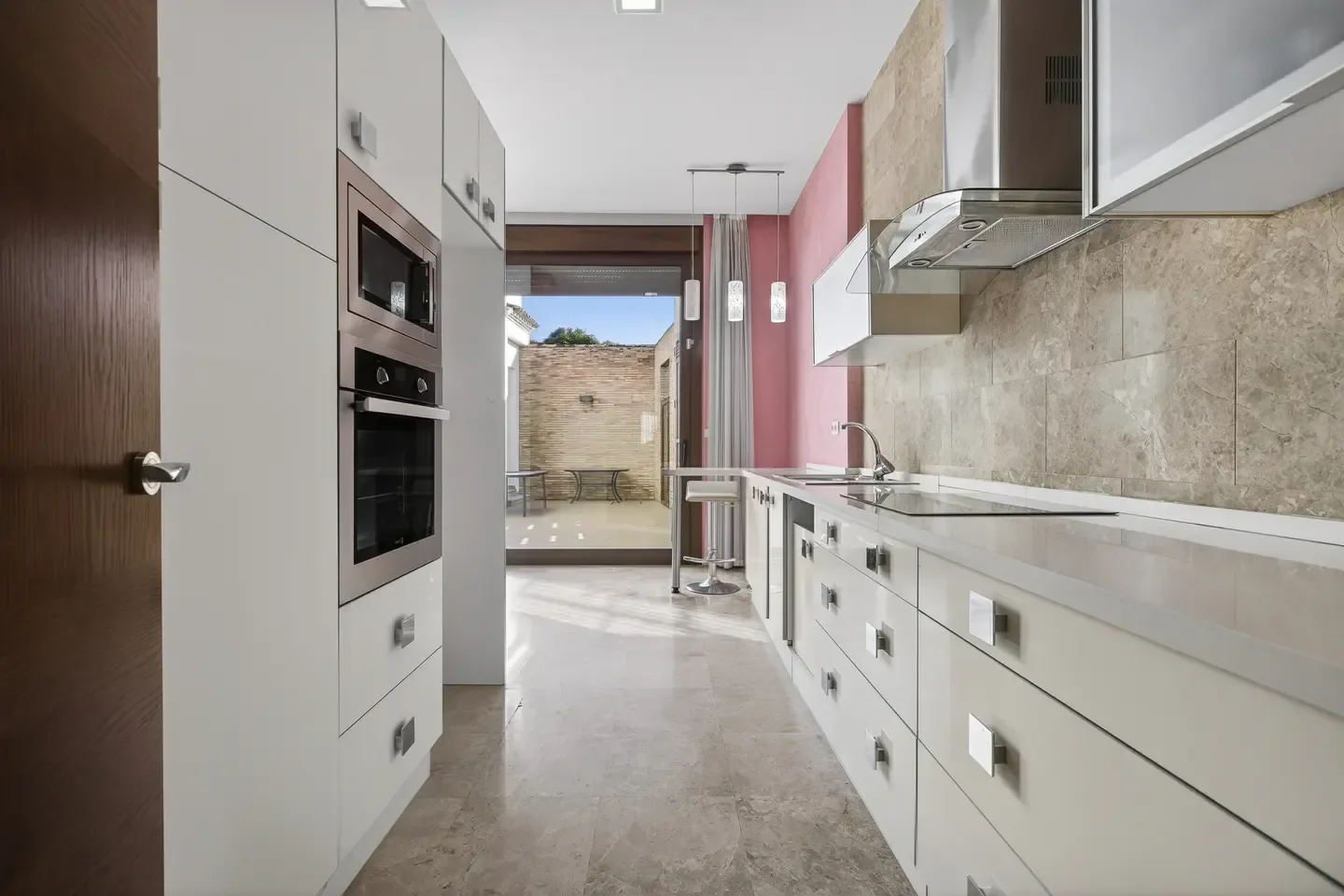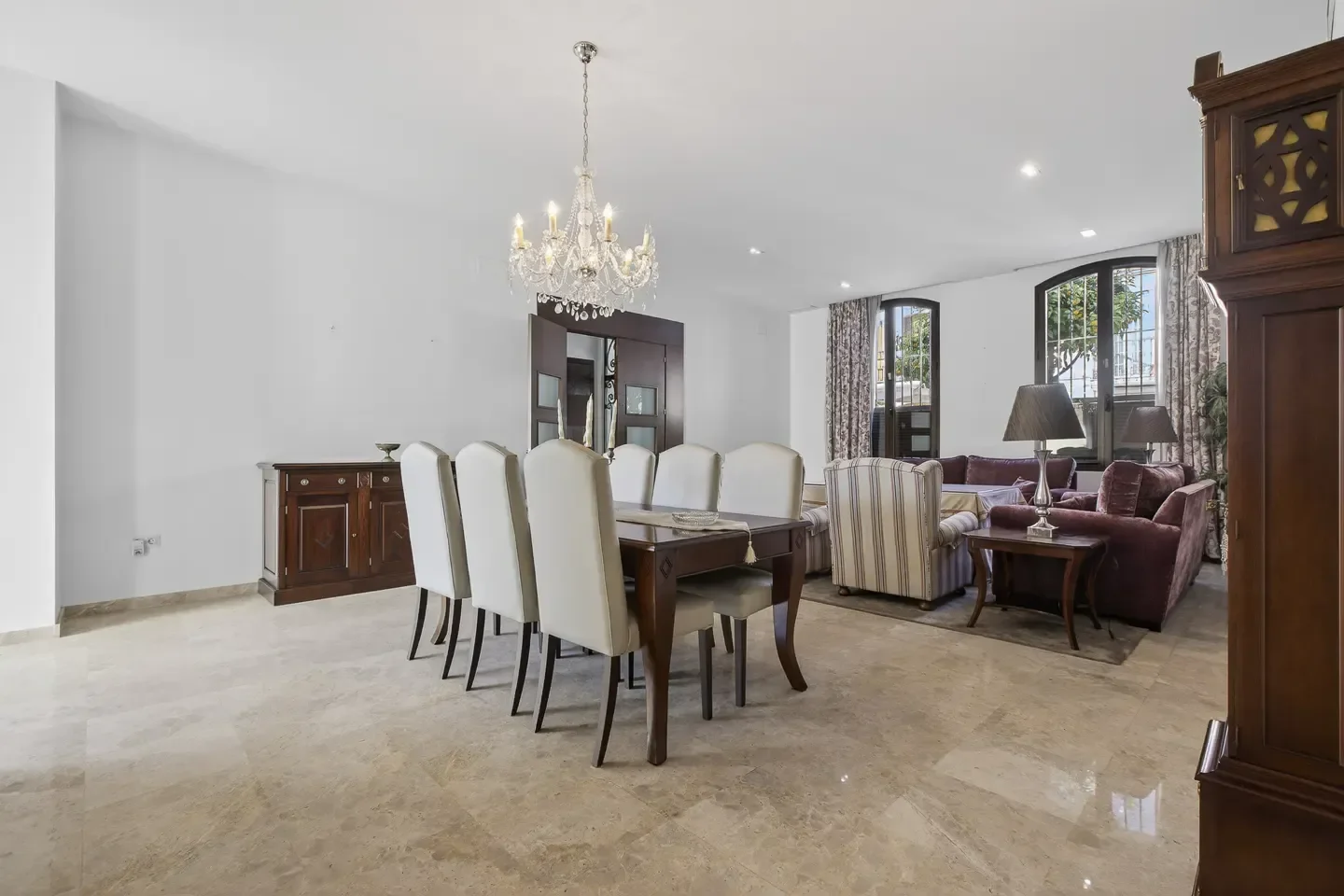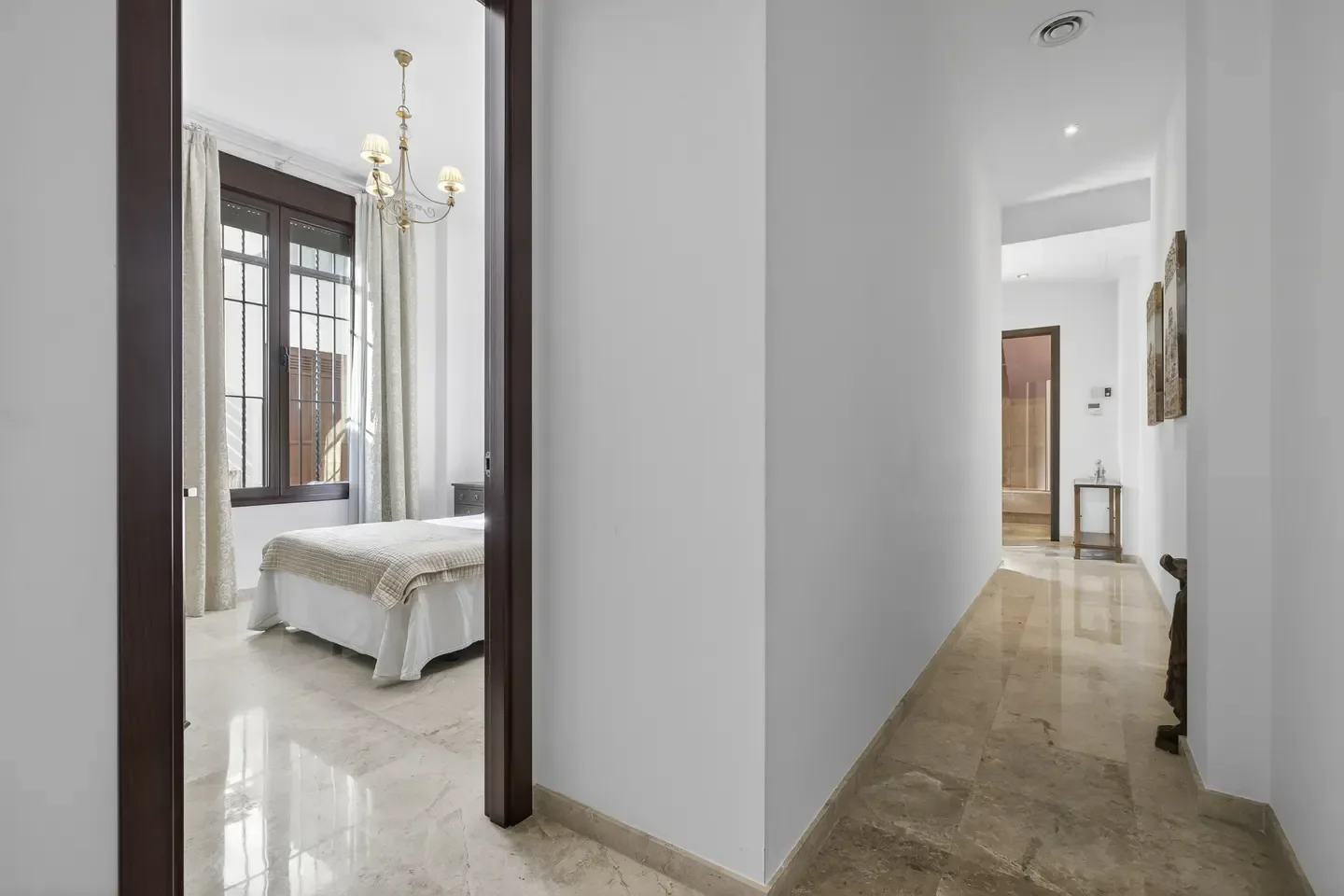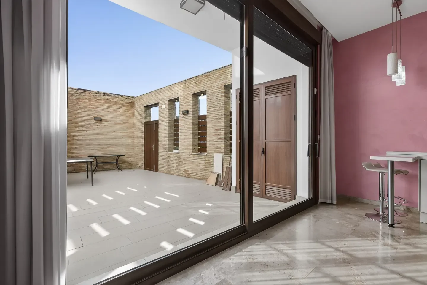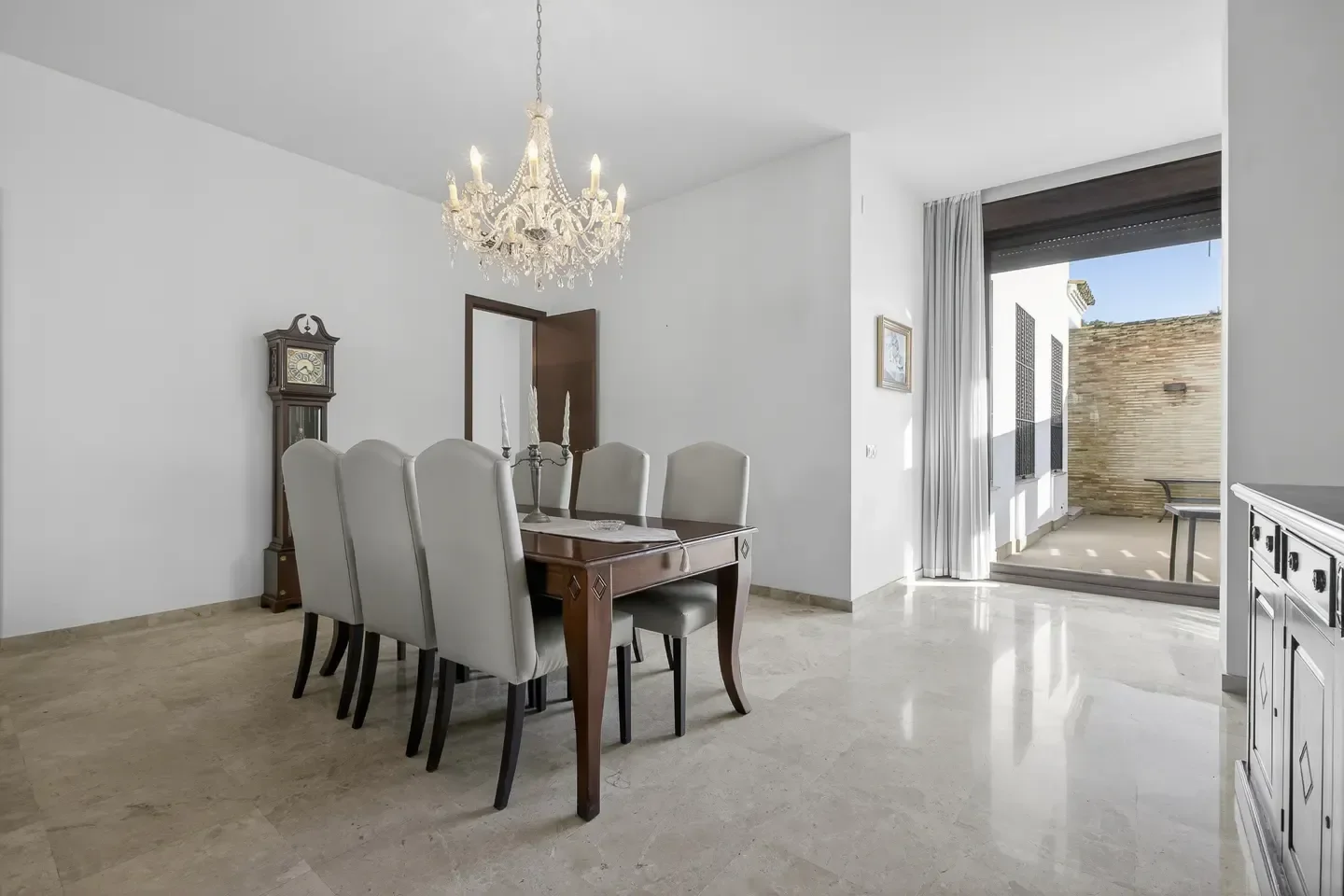 You're looking at 186 m² of living space with high ceilings, marble entrance, and two patios that do actual work rather than just sitting there looking decorative. The location puts you within walking distance of supermarkets, pharmacy, town hall, and a bus stop with direct connection to Seville's Plaza de Armas and Plaza de Cuba.