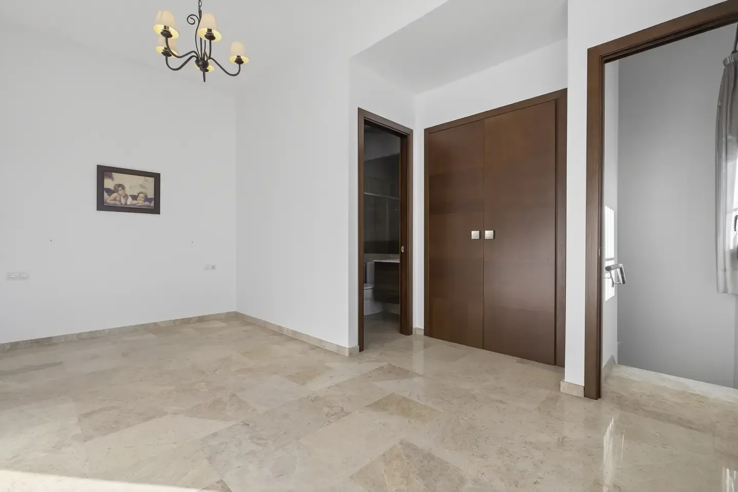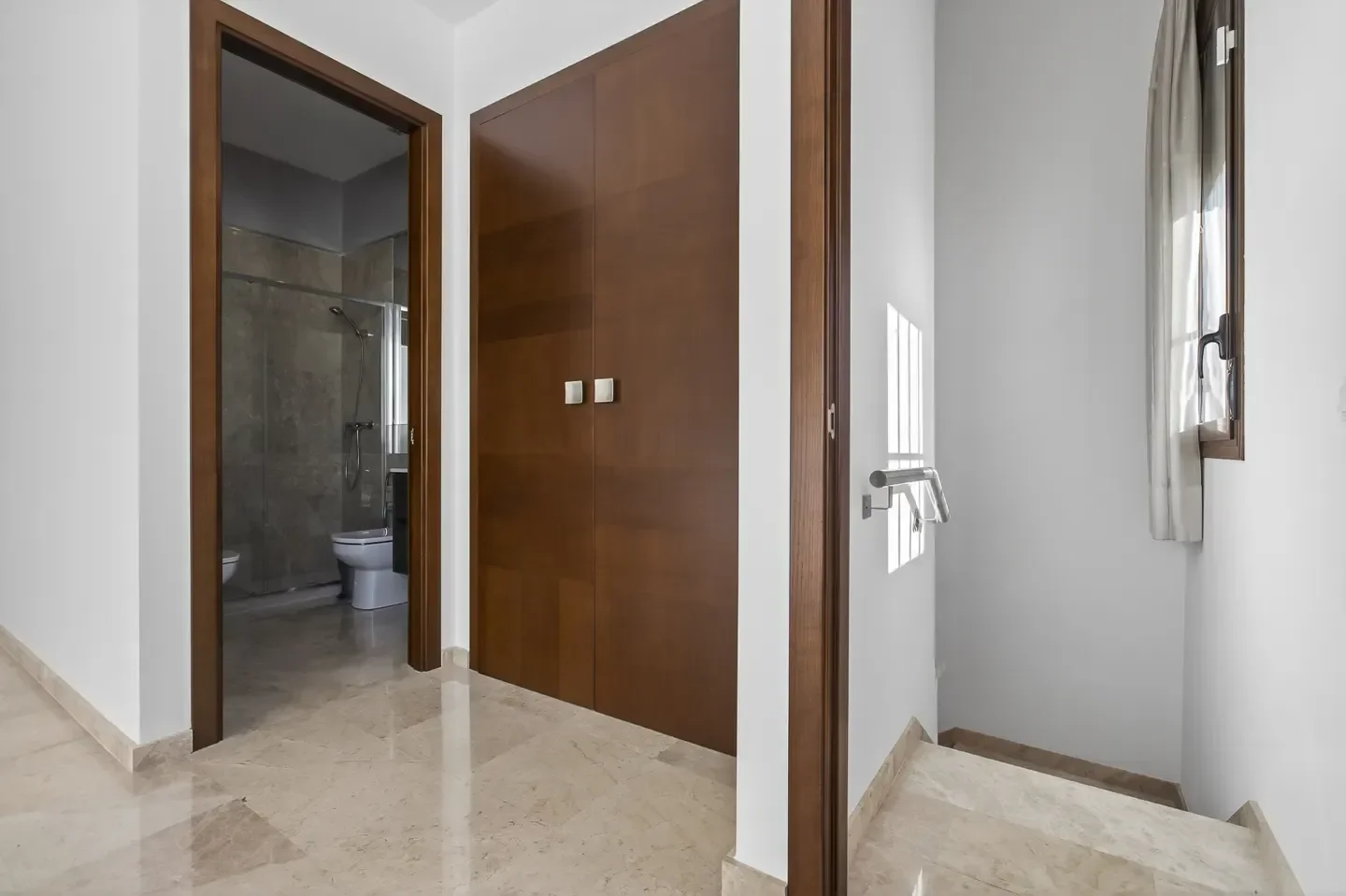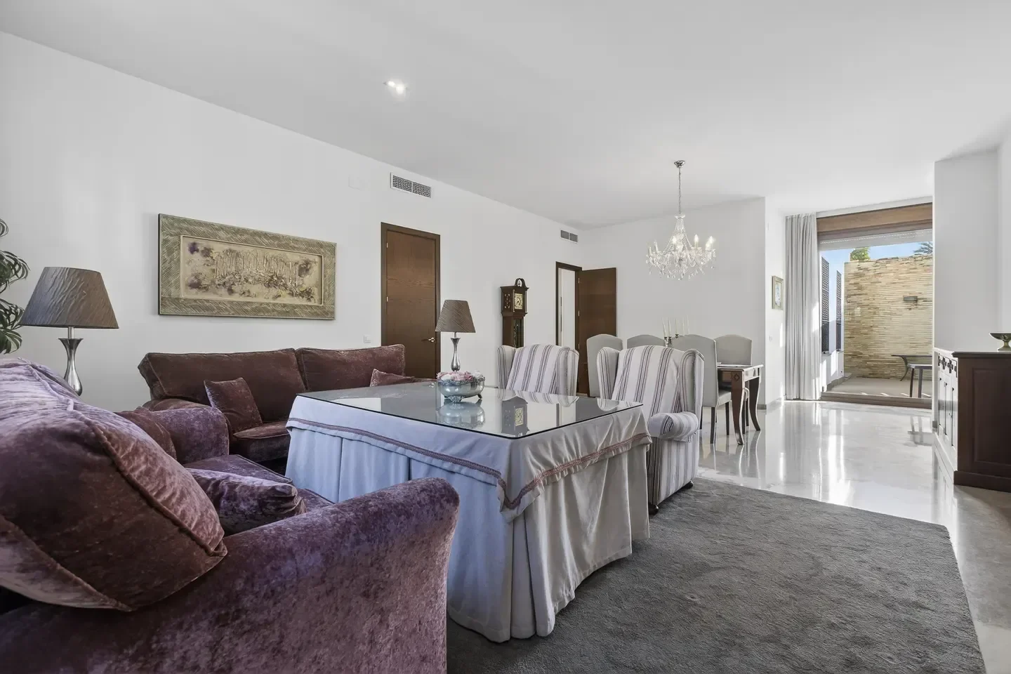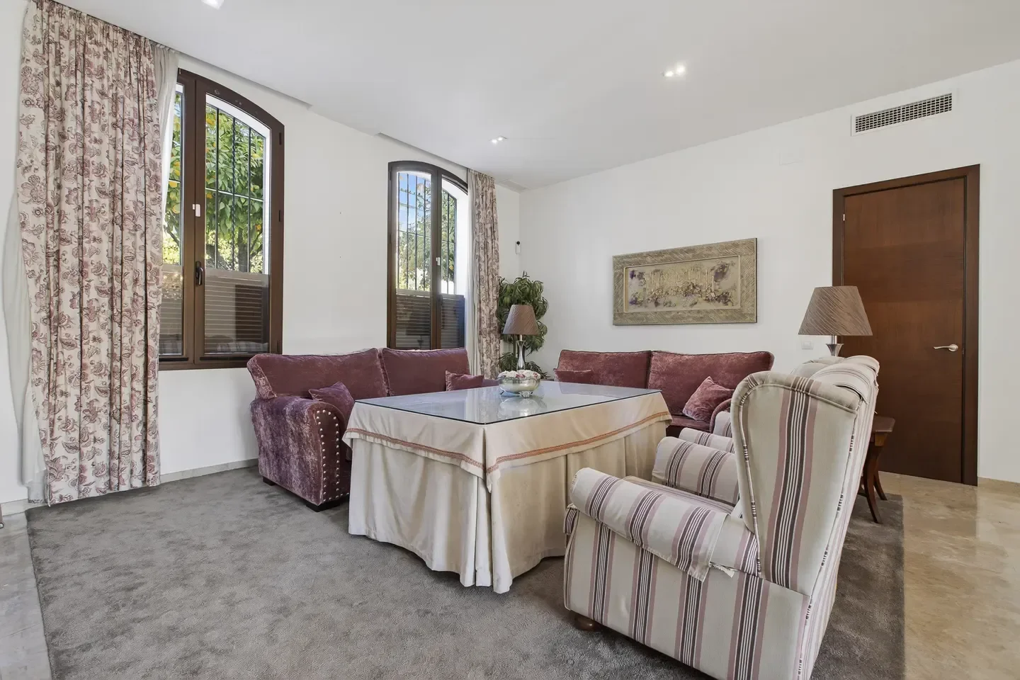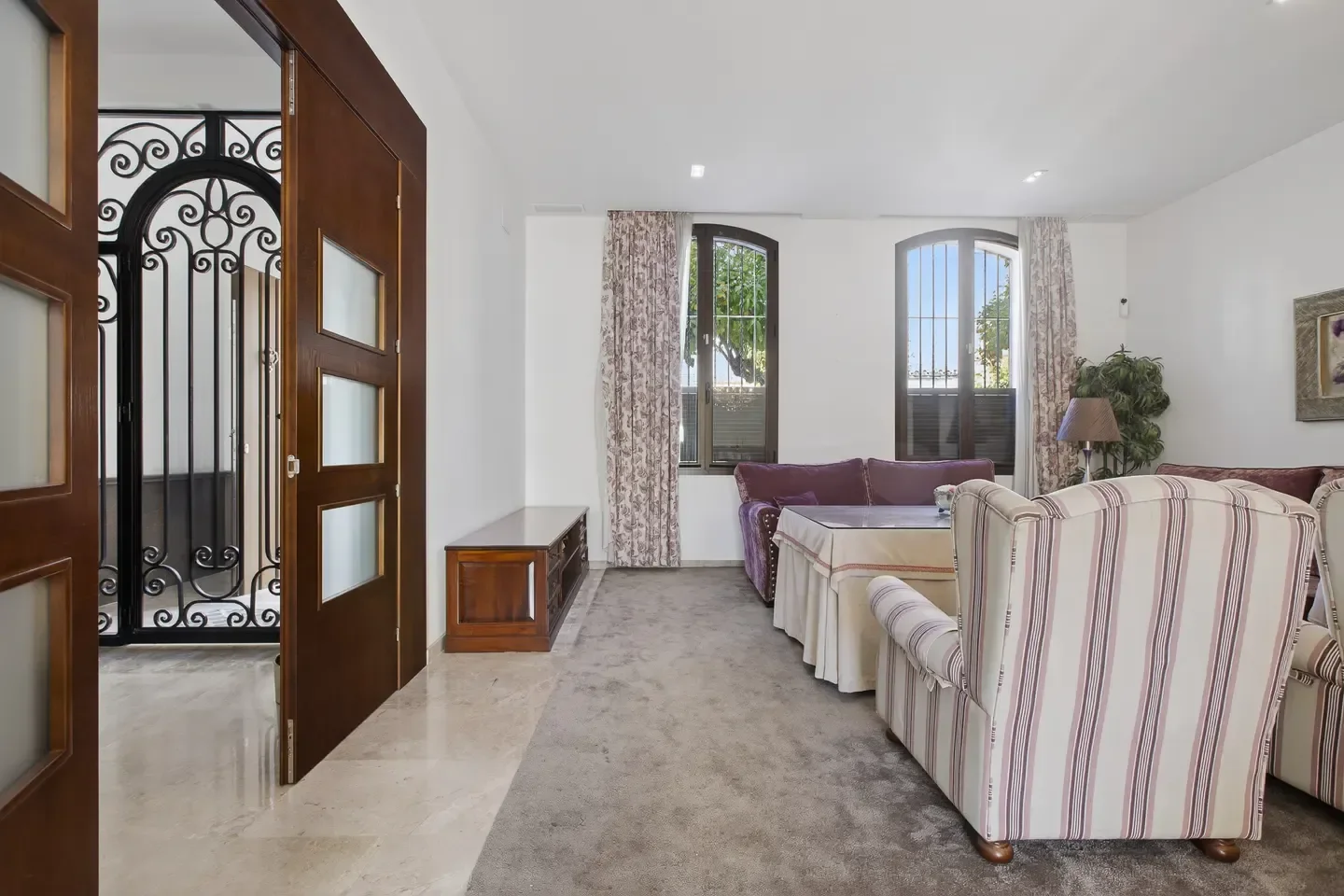 You're looking at 186 m² of living space with high ceilings, marble entrance, and two patios that do actual work rather than just sitting there looking decorative. The location puts you within walking distance of supermarkets, pharmacy, town hall, and a bus stop with direct connection to Seville's Plaza de Armas and Plaza de Cuba.