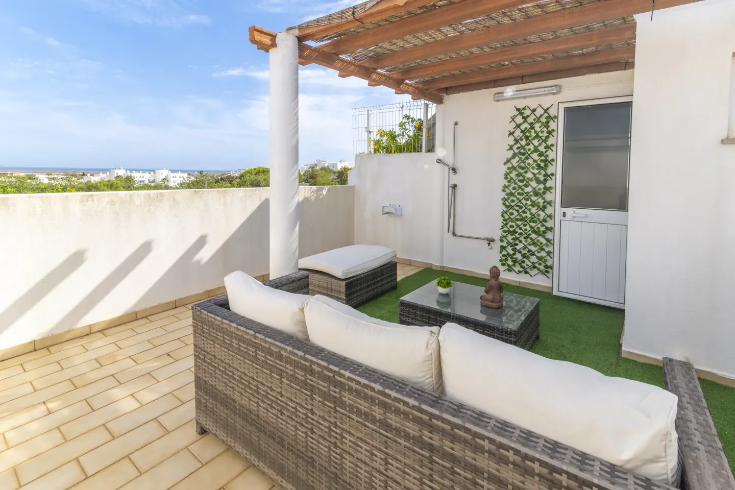 Rooftop terrace with sea views in Tavira centre where you're walking distance to everything without living in tourist chaos. Two bedrooms across three floors means proper space not cramped living, plus you get two terraces (one with BBQ on ground floor, one with sea views on top floor) for when Portuguese sunshine wants to brighten your day inside and out.