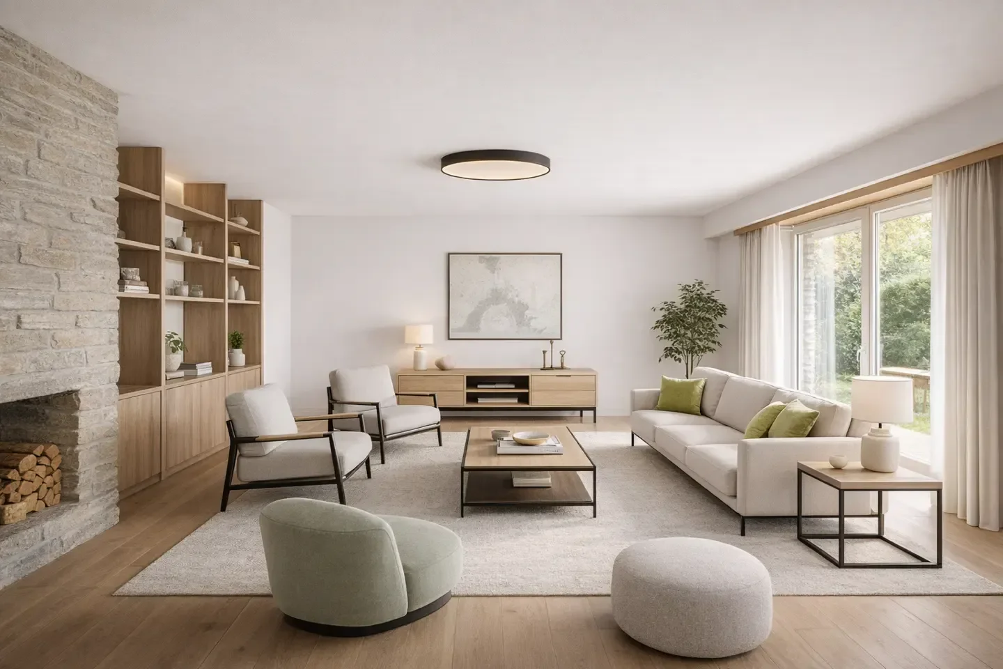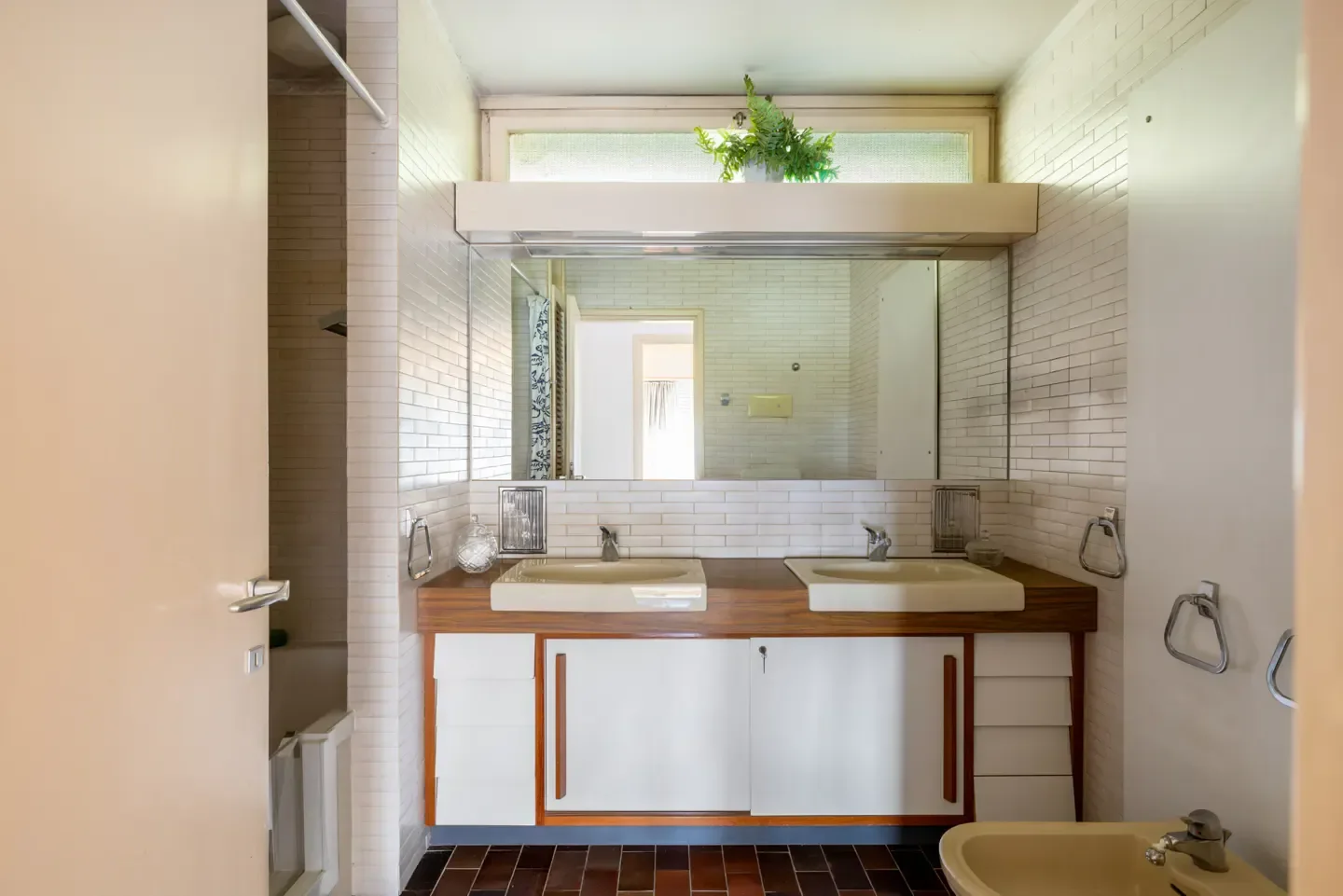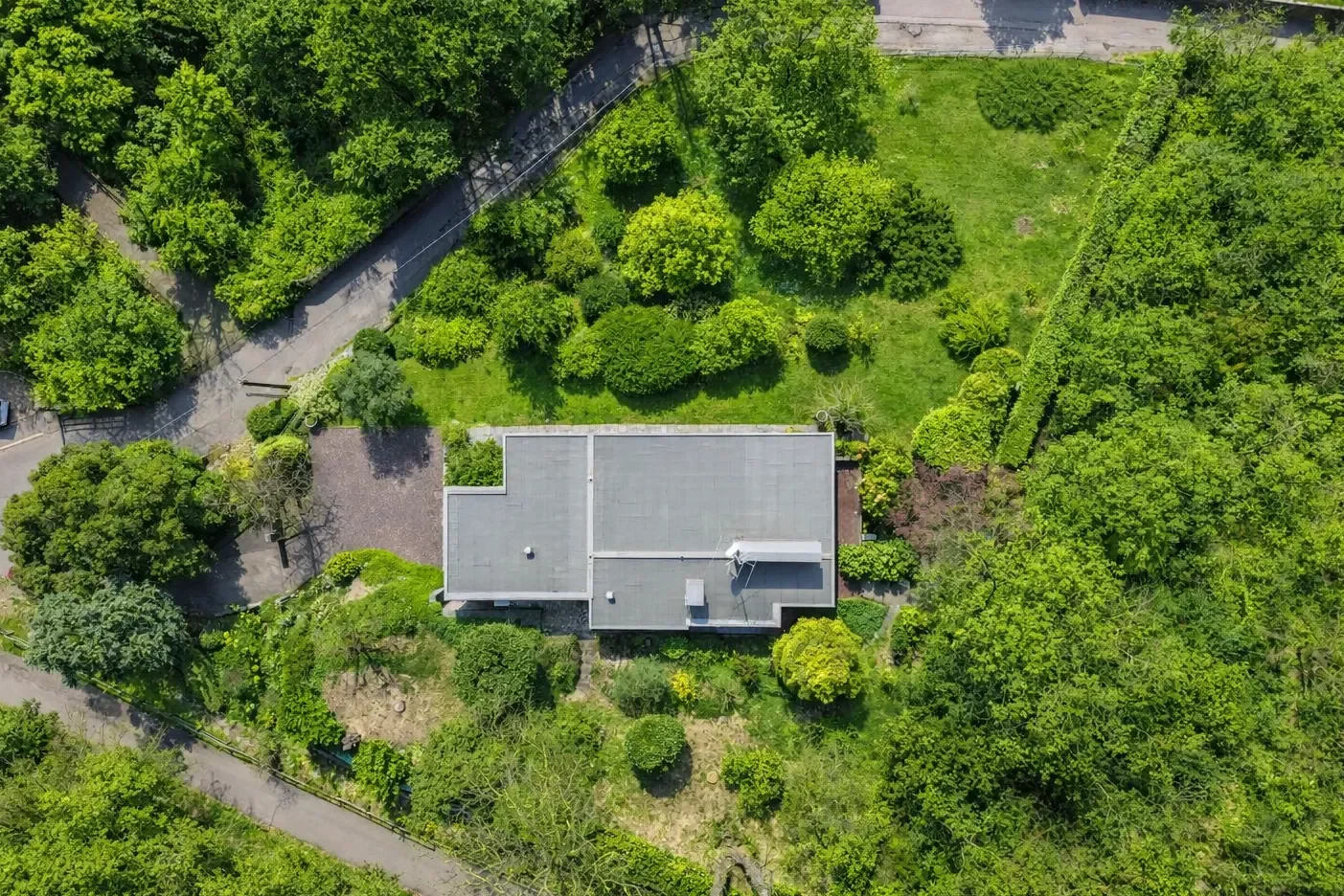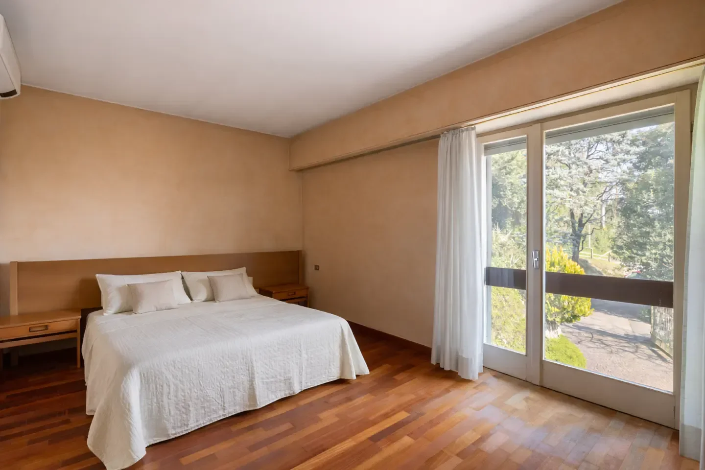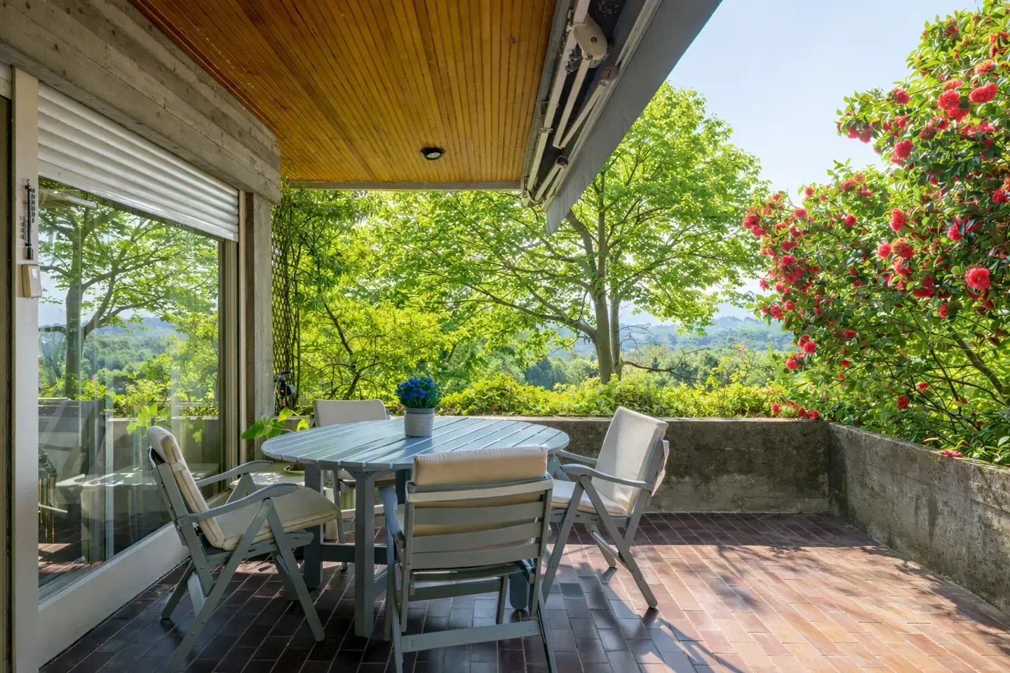Bold architectural lines, natural stone cladding, and a lush private garden spanning over 2,290 m²: this four-bedroom villa in Sangiano is not your average Italian hideaway. The interiors combine parquet and tile flooring across 312 m² of living space, with a mid-century modern sensibility that feels considered rather than accidental.