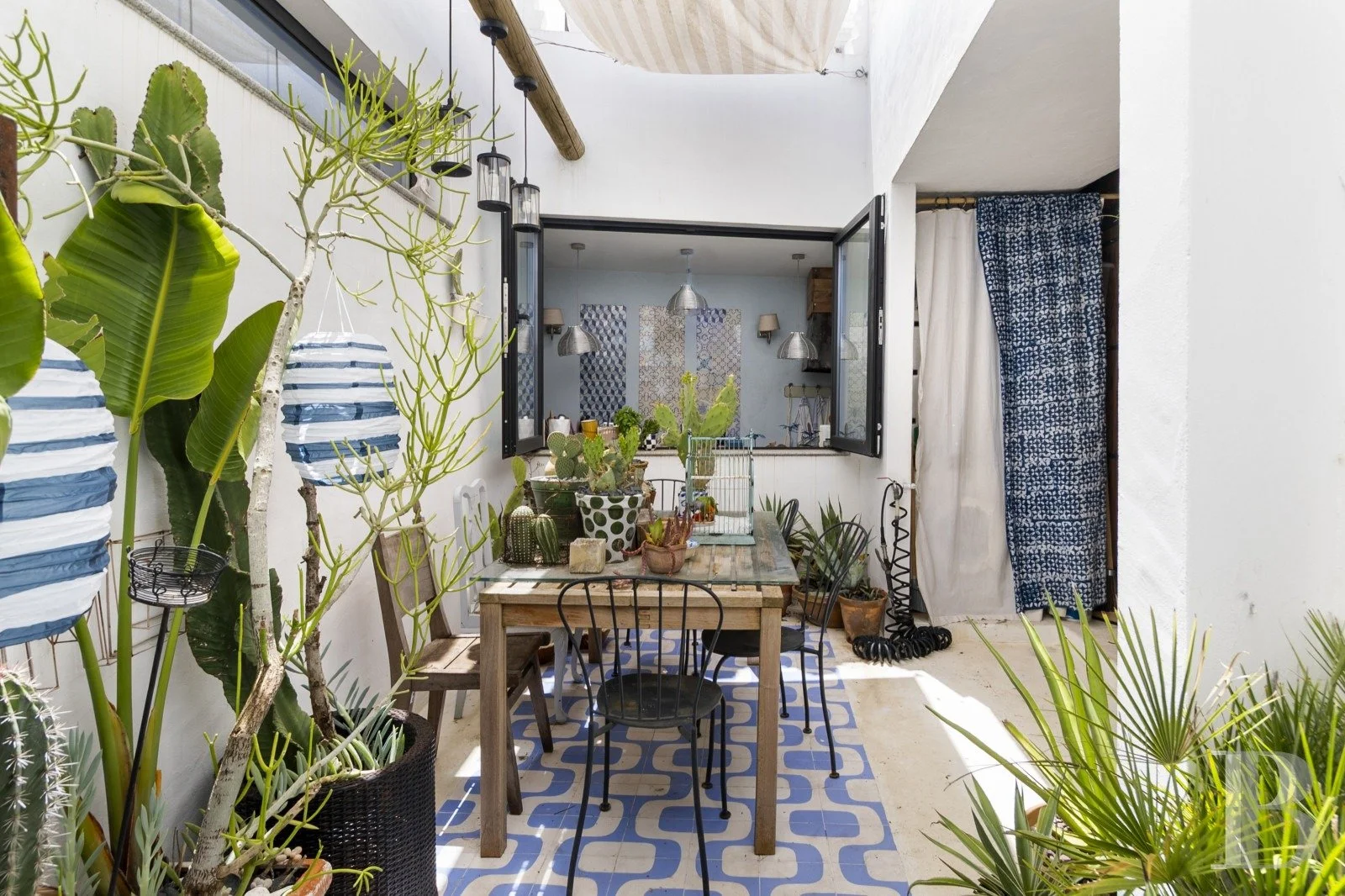 Immaculate white walls show off Estremoz cement tiles, 19th-century Lisbon azulejos, and hand-modelled Islamic ornaments. It's Moorish-meets-Portuguese without feeling like a museum installation.