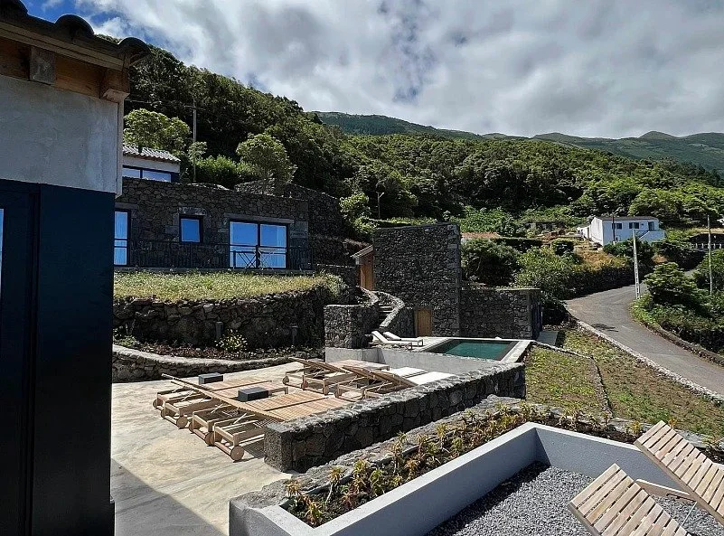 Features: Eco-resort development · Designed by architect Diogo Mega · Panoramic Atlantic Ocean views · Use of volcanic stone & local wood · Rooftop terrace · Shared pool · Fully furnished turnkey property · Air conditioning · Solar panels · Close to Magma Restaurant · Short drive to airport & amenities