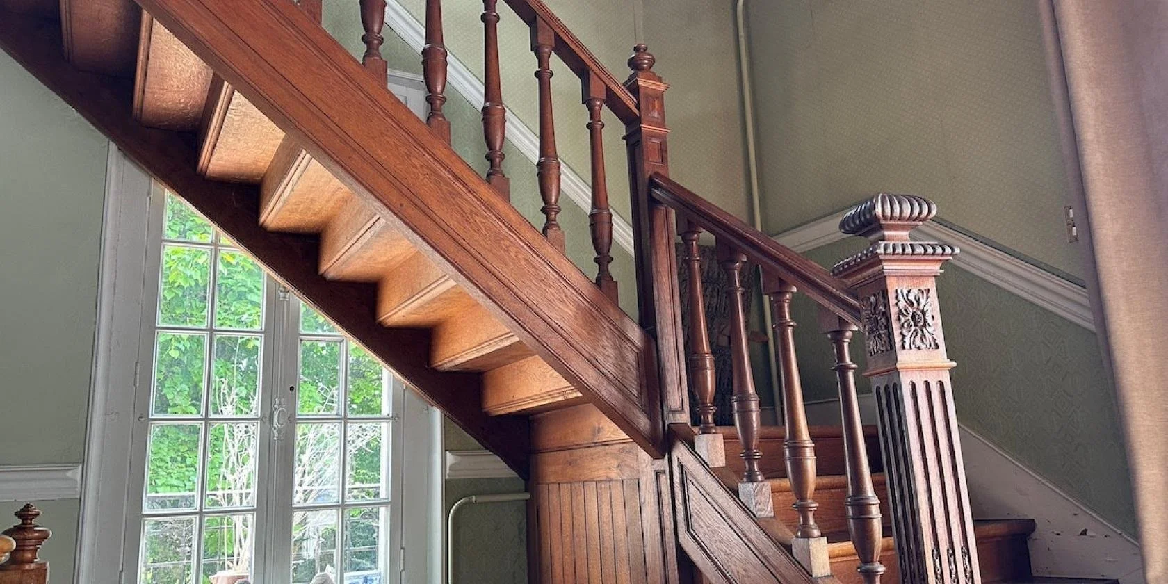 Features: 19th-Century Staircase · Fireplace · Balcony with Turret Access · Convertible Attic · Basement with Laundry & Garage · Additional Double Garage · Village Location · Views over Meadows · Renovation Potential