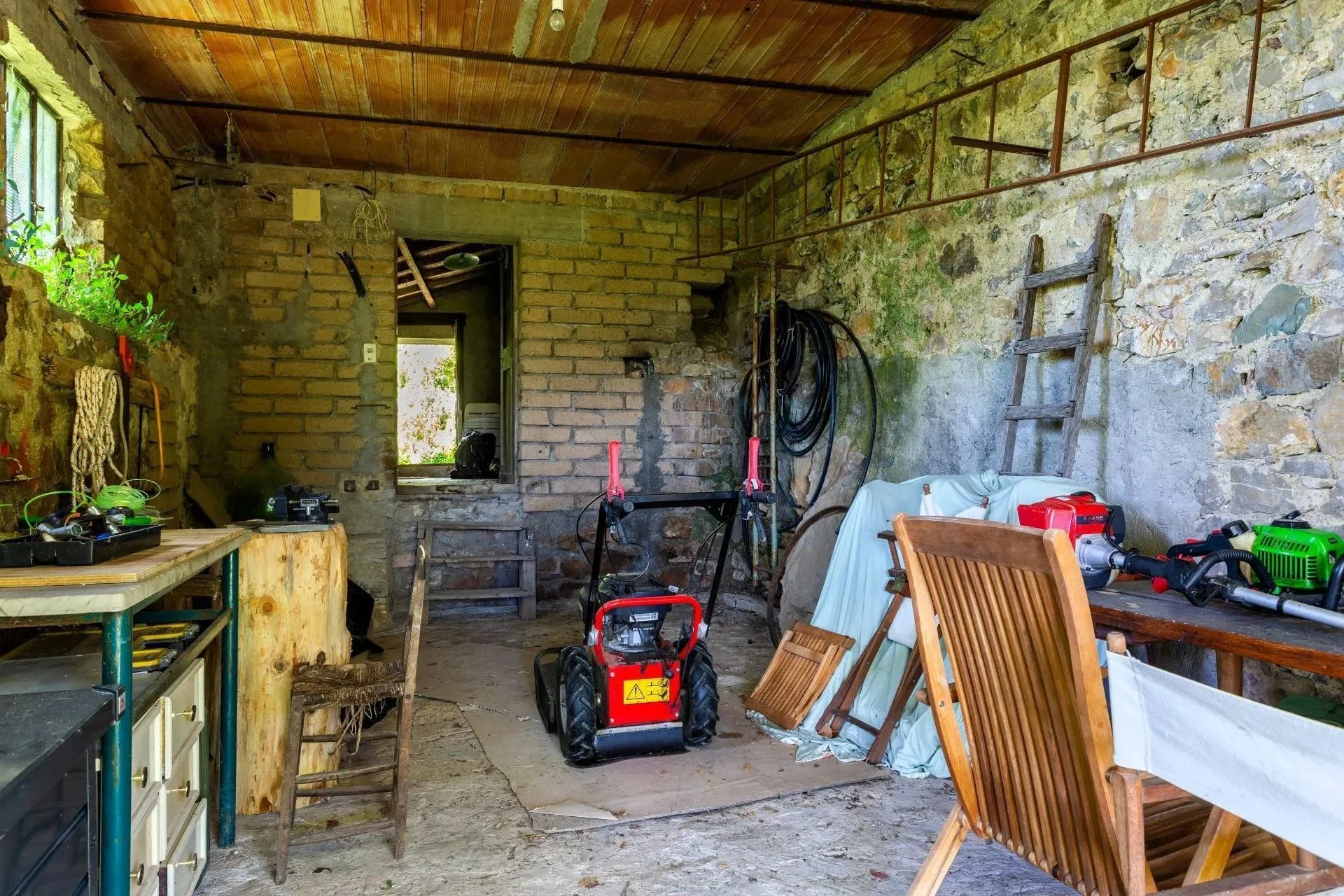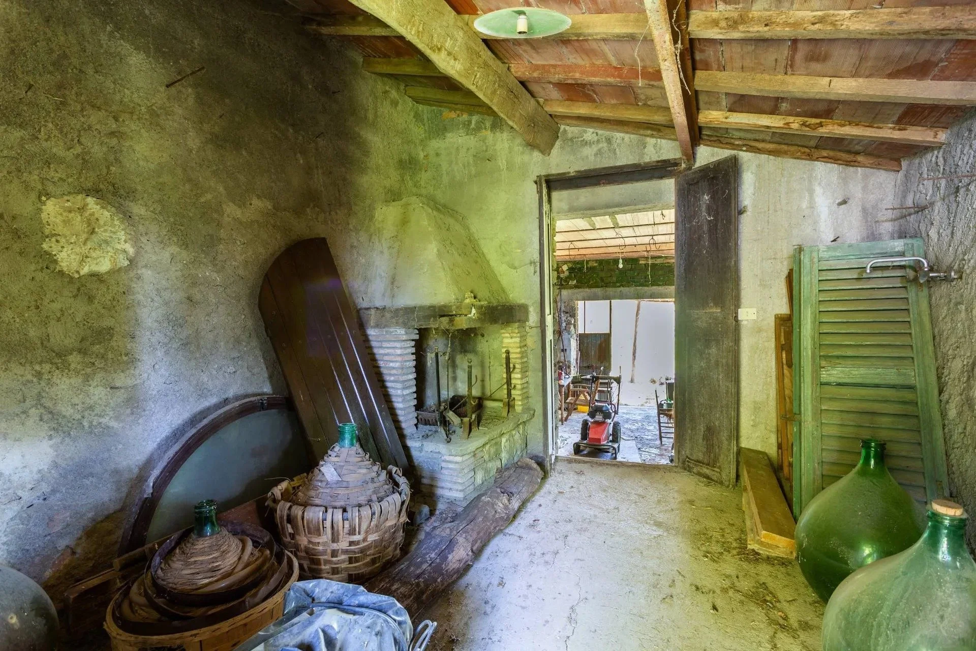 It sits above a rustic outbuilding complete with a vintage fireplace and potential to convert it into a guest hideaway, artist’s studio, or a very fancy wine cave.