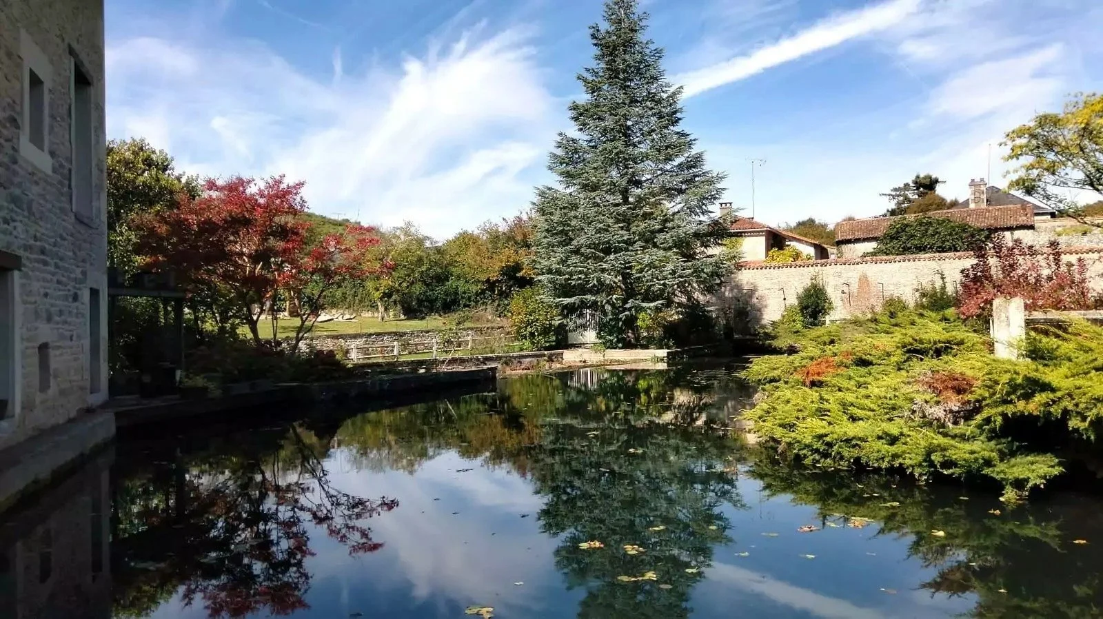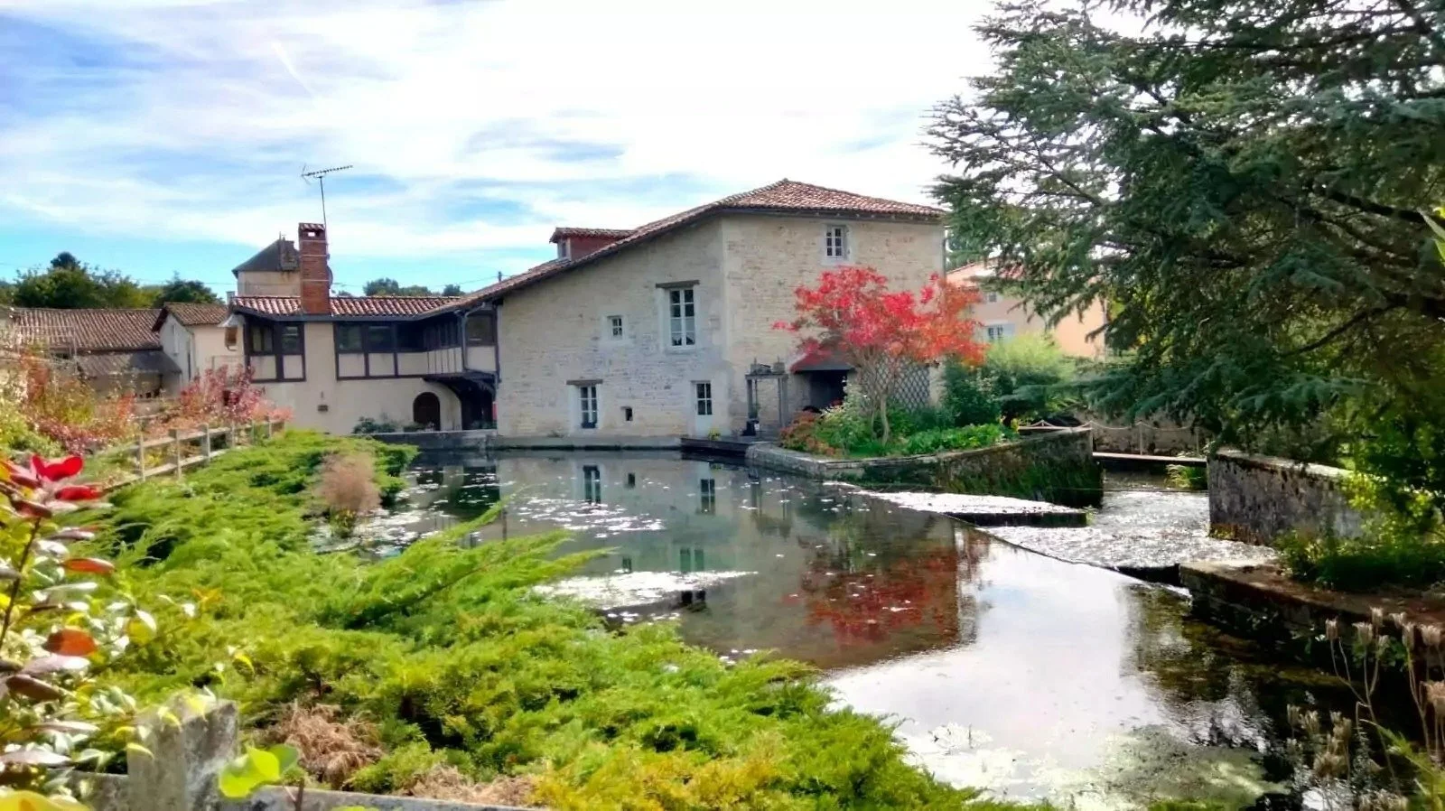 Features: etached · Historic old stone mill · River frontage · Outbuildings · Guest apartment · Aquatic gardens with waterfalls and bridges · Garage/workshop (100 m²) · Fishing & boating access · Exceptional village location with boulangerie nearby · DPE Rating: D (201 kWh/m²) · GES: B (6 kgCO₂/m²)