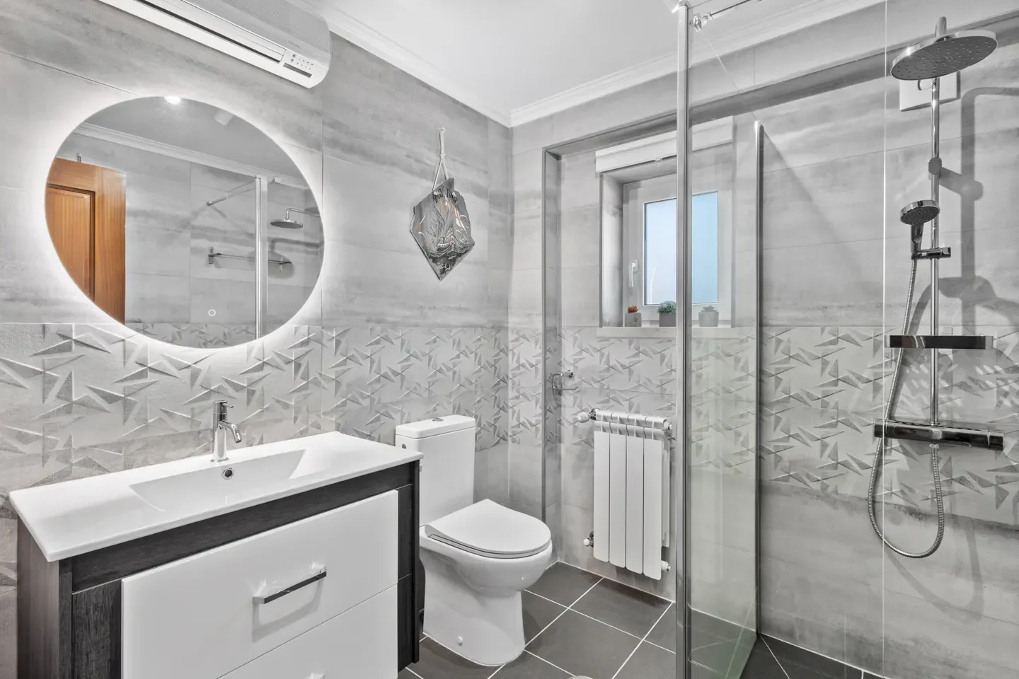 Five bedrooms split across two floors with two full suites. Four bathrooms total eliminates the single-bathroom stress that ruins family holidays and makes permanent living workable. Traditional Portuguese bones with terracotta and actual character rather than modern builds attempting charm through marketing copy.
