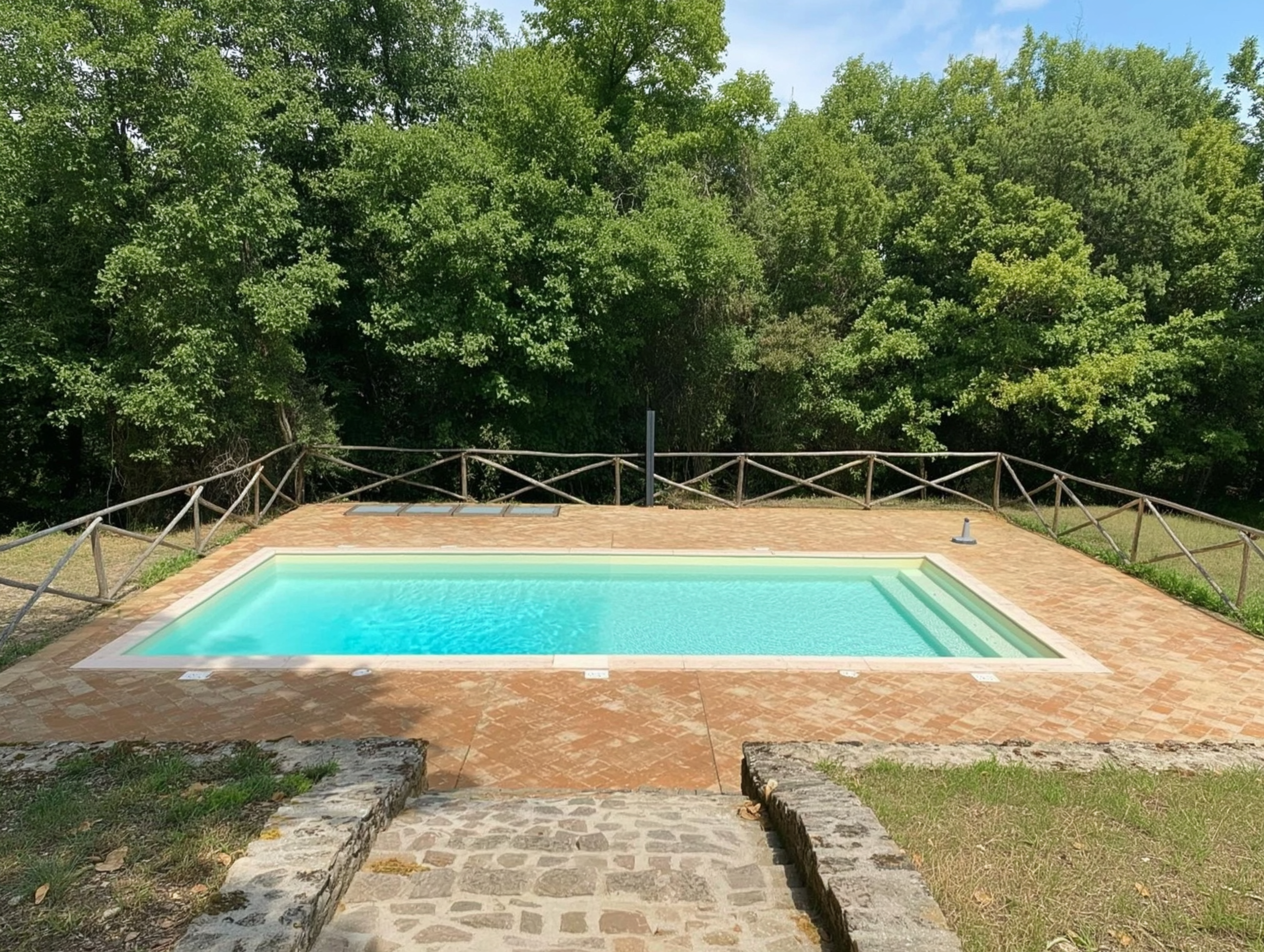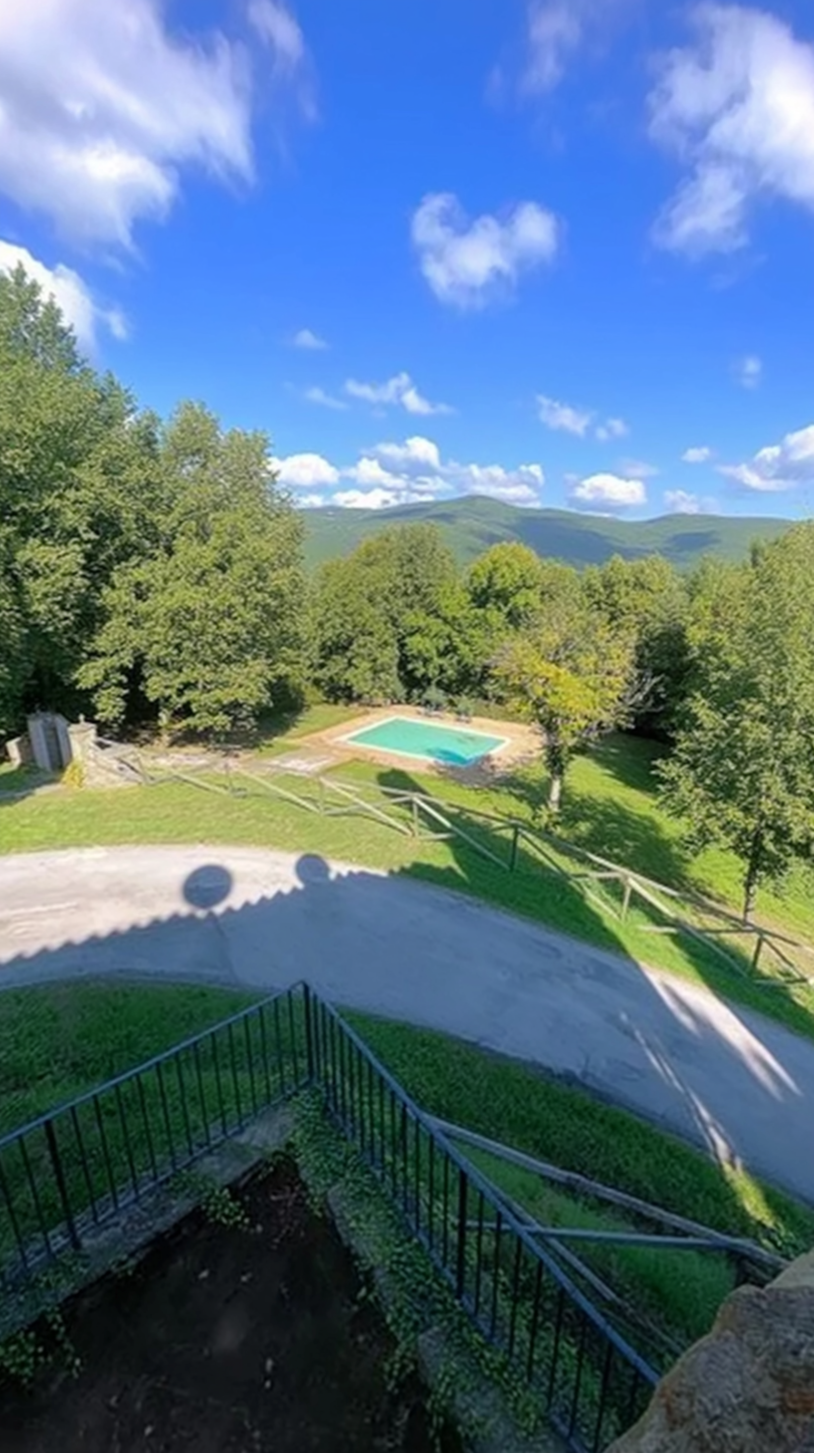 9,000 square metres of surrounding land includes a swimming pool for those hot summer days when even the Italians admit it's too warm. There's a small historic hamlet nearby, mostly inhabited in summer, which gives you neighbours without the year-round commitment. Basic services (post office, restaurant, schools) are 5-6km away, larger town with proper amenities is 15km.