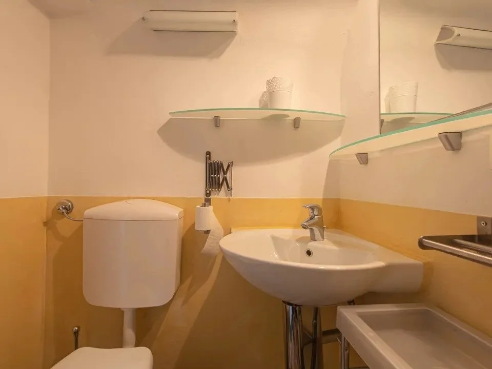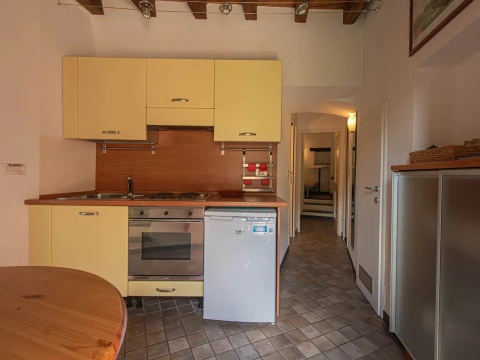 This apartment may have been the village church. There's an original niche still visible on the exterior wall, and the vaulted ceiling in the living area suggests sacred origins.
