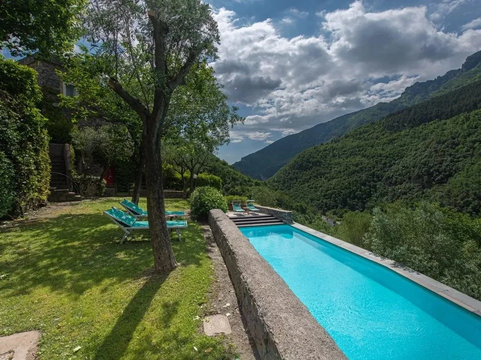 Features: Communal Infinity Pool · Guest House · Barbecue & Garden · Furnished · Double Glazing · Internet & Satellite TV · Vaulted Ceiling · Private Garage · Storage Space · Terrace with Valley Views · Meditation Space · Business Center · On-site Restaurant · Seasonal Sauna & Wellness Amenities · Original Church Niche Visible · Historical Details Preserved